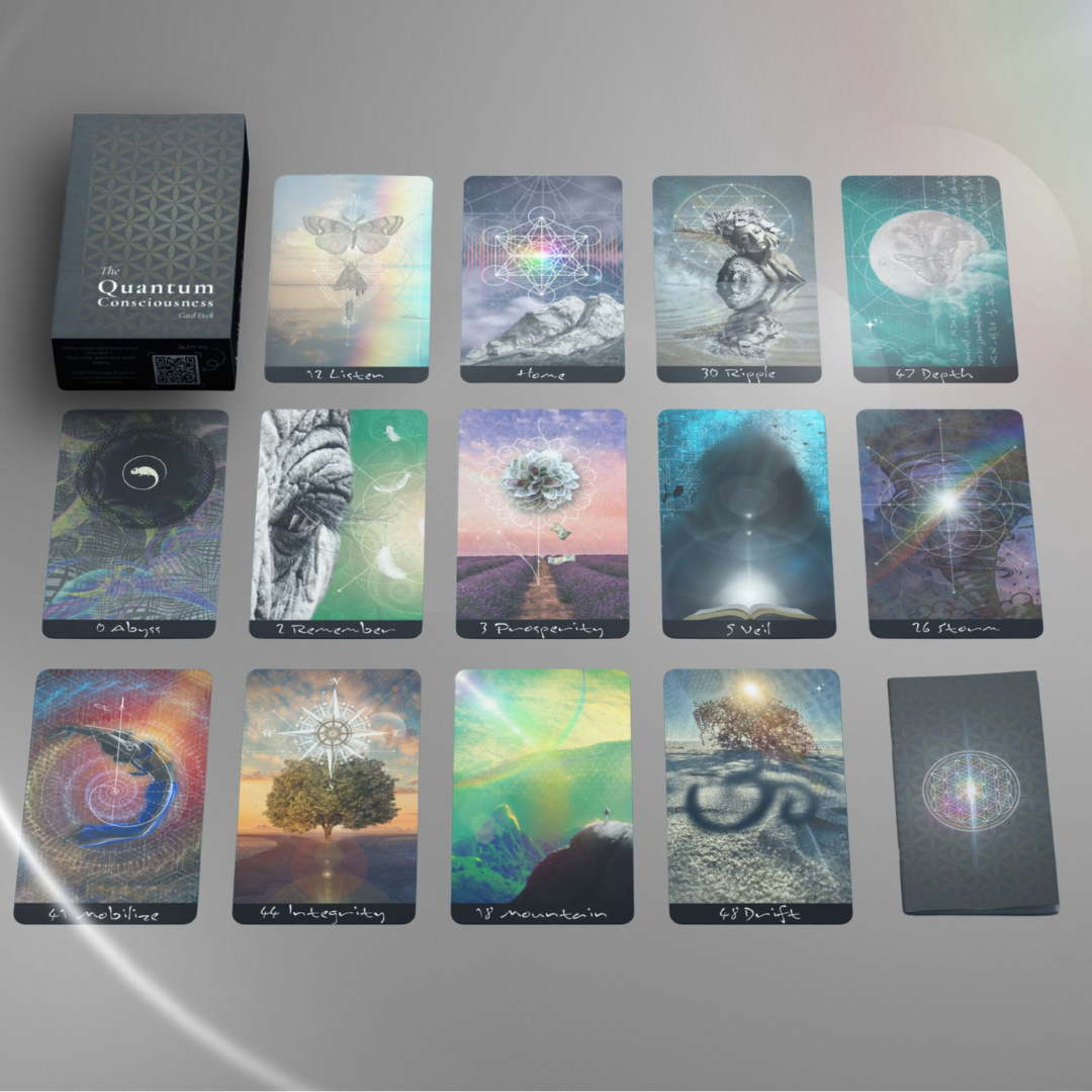 Those early tools evolved into the Quantum Consciousness Cards™ — inner navigation instruments designed to strengthen intuitive clarity and pattern recognition, whether used with plant allies or independently.